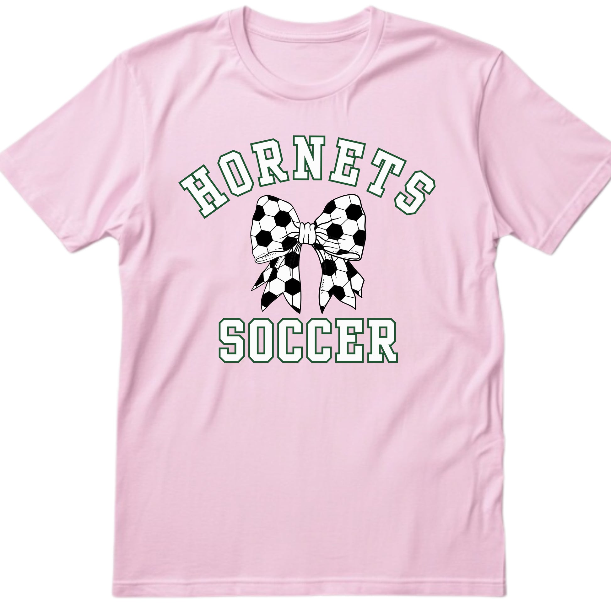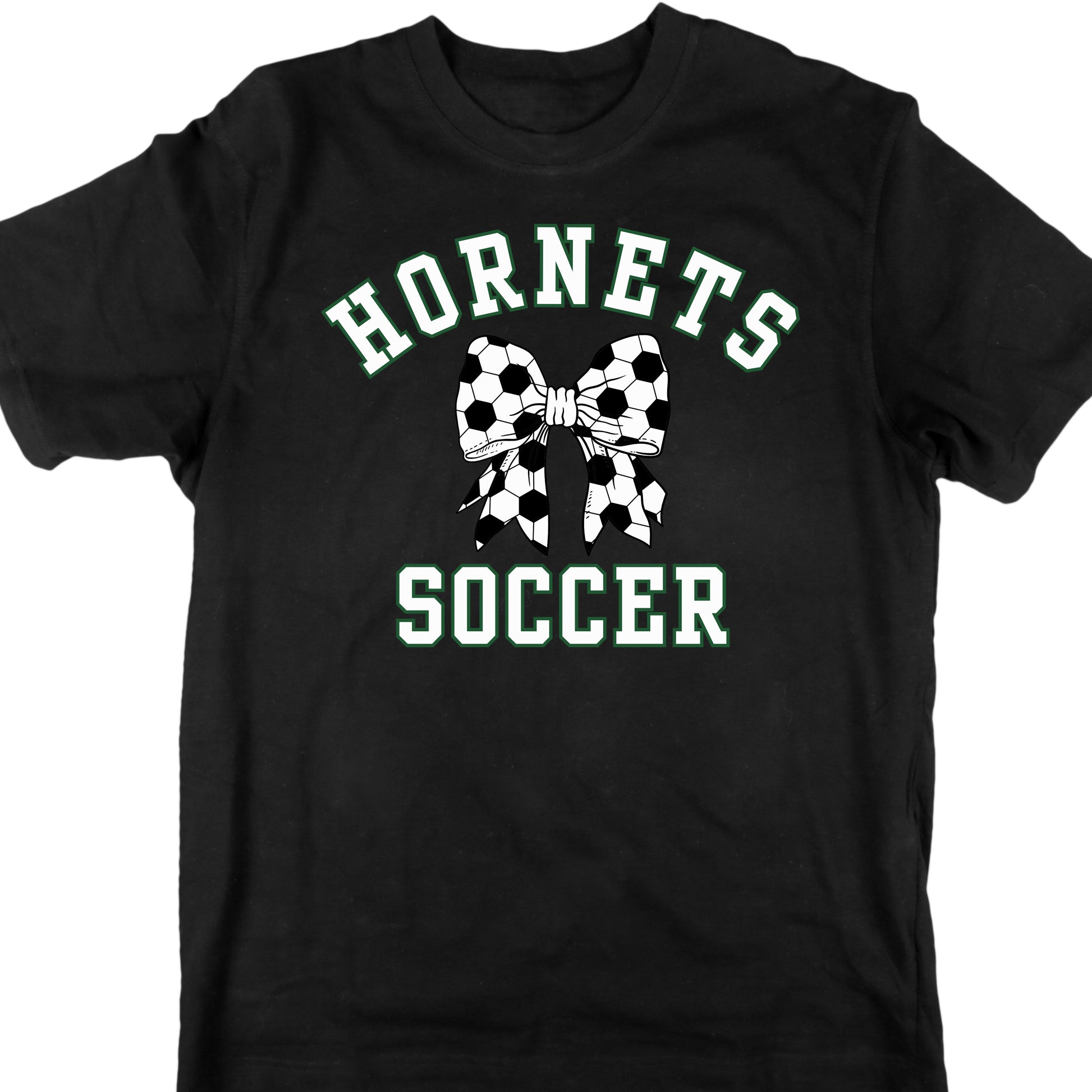 This tee features a bold bow graphic with a soccer twist, paired with our signature Hornets pride. Perfect for game days, team events, or just repping your favorite players from the sidelines.